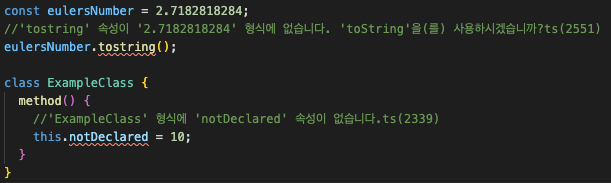 이처럼 타입스크립트는 실수를 저질렀을 때 버그를 아주 잘 잡아낼 수 있습니다.